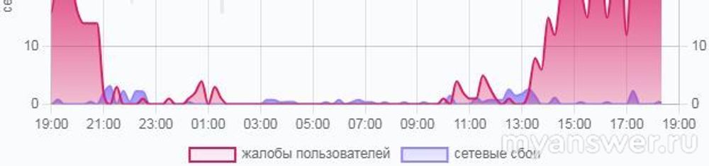 Люди не могут приложение открыть, в кабинет попасть личный, зависает. Кстати, сайт тоже не айс по своей работе, хотя и жалоб по нему существенно так меньше идет, проблем больше все же идет по приложению. Если рассмотреть сетевые на диаграмме проблемы, то они есть, это бугорки такие синеватые внизу, но не настолько же ощутимы они, чтобы приложение начало сбоить. Вероятно, что неполадки могут быть, либо из-за притока чрезмерного пользователей, перегруза, или из-за проблем с обновлением, возможно, разработчики чего-то там накосячили.