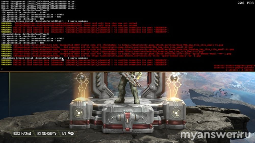 ZeniMax в сентябре закрыла доступ к своим серверам для пользователей из РФ, и дум этёрнал не может получить доступ к одному файлу, ссылку оставлю ниже.