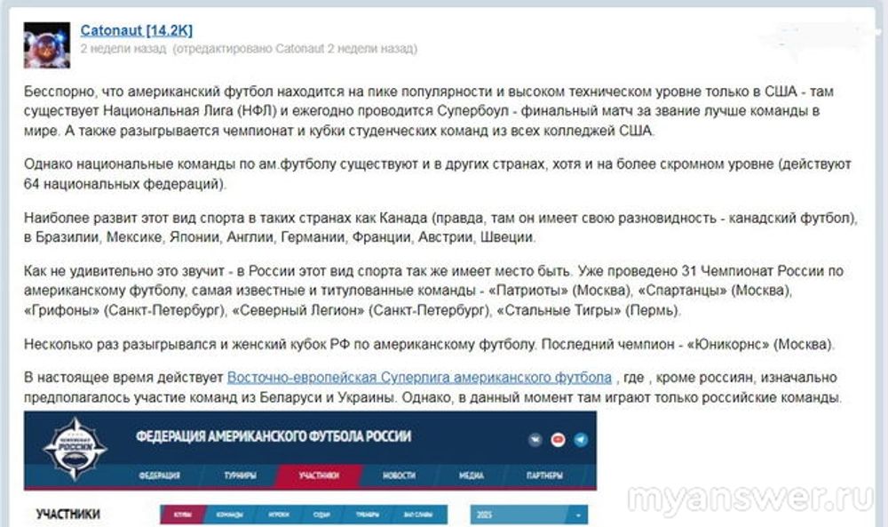 Про то, где в американский футбол играют кроме США (а в него много где играют, даже в России и в Беларуси!), я уже отвечал здесь.